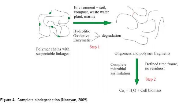 其理由是,人們腦子中的 “降解” 概念是在來源于對自然的觀察,例如木材等有機(jī)體可以被自然存在的微生物完全降解,成為其他機(jī)體的營養(yǎng),形成物質(zhì)閉環(huán),而目前 “可生物降解” 塑料等人造的聚合物,都是聚酯類高分子,需要特定的水解條件進(jìn)行第一步化學(xué)降解,然后才有可能被微生物消化。