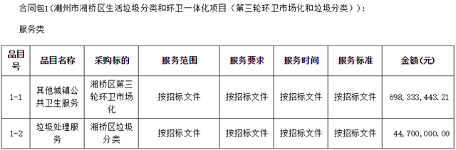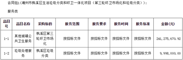近日,中國(guó)固廢網(wǎng)從E20環(huán)境平臺(tái)標(biāo)訊采集系統(tǒng)E標(biāo)通獲悉,廣東省潮州市湘橋區(qū)生活垃圾分類(lèi)和環(huán)衛(wèi)一體化項(xiàng)目(第三輪環(huán)衛(wèi)市場(chǎng)化和垃圾分類(lèi))、潮州市楓溪區(qū)生活垃圾分類(lèi)和環(huán)衛(wèi)一體化項(xiàng)目(第三輪環(huán)衛(wèi)市場(chǎng)化和垃圾分類(lèi))相繼發(fā)布中標(biāo)公告,深能環(huán)保聯(lián)合體中標(biāo)湘橋區(qū)項(xiàng)目,中標(biāo)金額約7.43億元,服務(wù)期限5年;除此之外,深能環(huán)保又單獨(dú)斬獲楓溪區(qū)項(xiàng)目,中標(biāo)金額約2.51億元,服務(wù)期限5年。