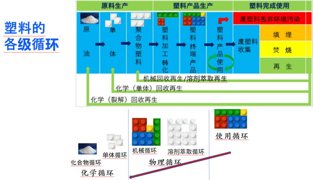 圖二:塑料的化學(xué)回收再生(化學(xué)循環(huán))和其他各級塑料循環(huán)的關(guān)系