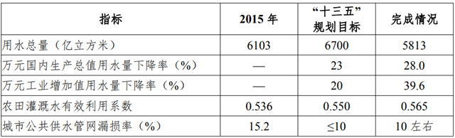 我國在“十三五”節(jié)水型社會(huì)建設(shè)主要目標(biāo)指標(biāo)完成情況,見下圖: