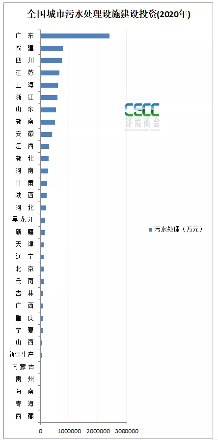 從固定資產投資來看,2020年,廣東省污水設施建設投資,接近240億,福建省和四川省的投資額為78億、75億左右。具體如圖: