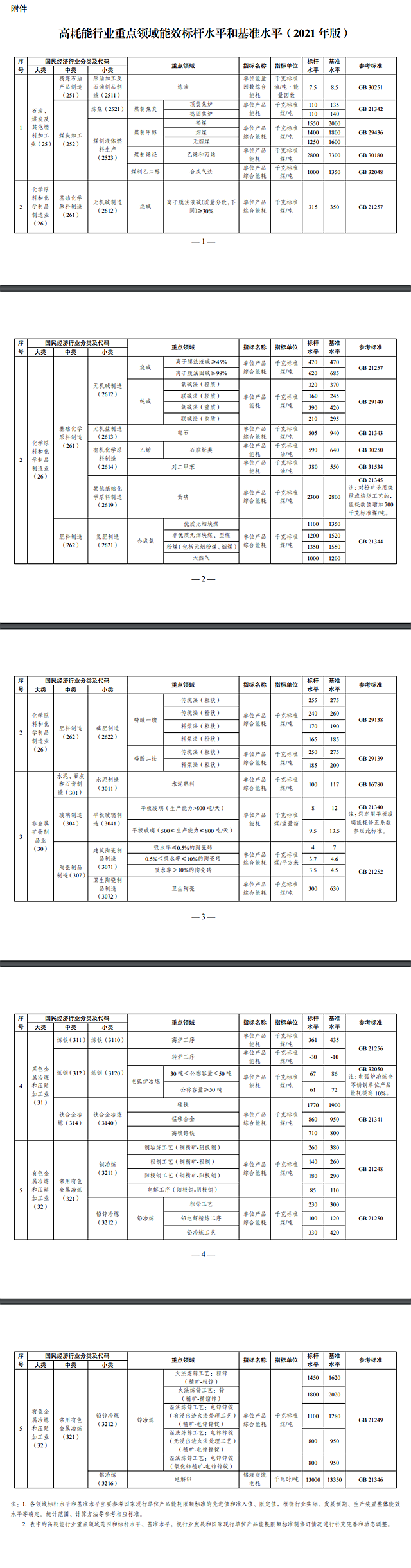 附件:高耗能行業(yè)重點領域能效標桿水平和基準水平(2021年版)