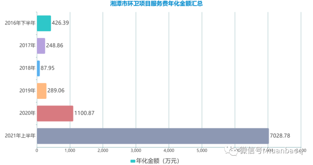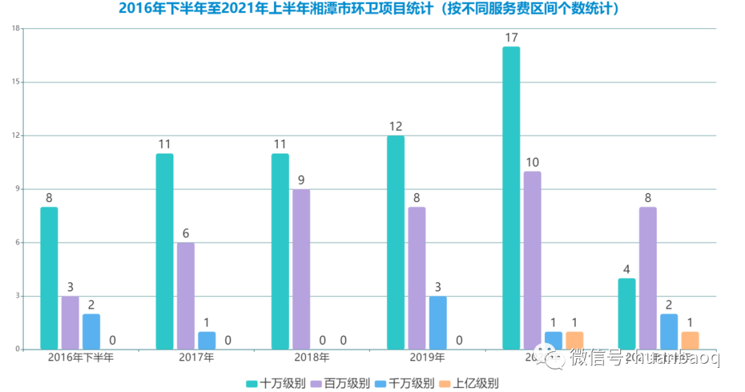 5年發(fā)布118個環(huán)衛(wèi)項目,2020年成轉(zhuǎn)折點據(jù)統(tǒng)計,2016年7月1日至2021年6月30日,湘潭市共發(fā)布118個環(huán)衛(wèi)項目,服務費金額合計約為48.34億元。▼118個環(huán)衛(wèi)項目中,TOP10項目的排行榜如下(按服務費金額):