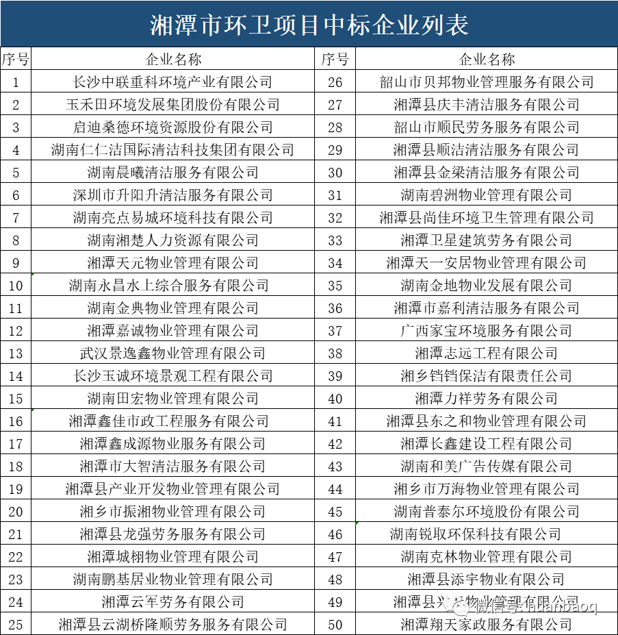 ? 第一,從50家中標企業(yè)的“屬地”上可以看出,湘潭市環(huán)衛(wèi)市場可謂“物業(yè)橫行”。