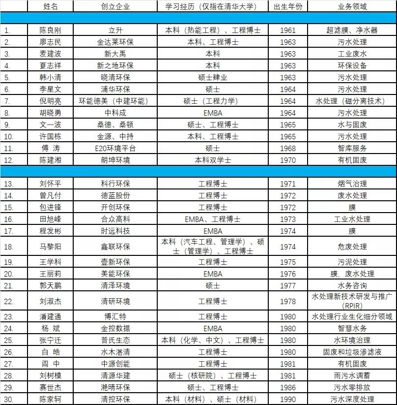另外也有一批畢業(yè)于清華大學其他院系的環(huán)境產業(yè)創(chuàng)業(yè)者。