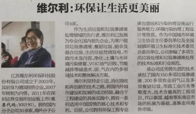 近日,常州日報在《“三駕馬車”齊頭并進,新北駛?cè)搿捌放茝妳^(qū)”快車道 ——寫在新北區(qū)成立15周年、高新區(qū)成立25周年之際》文章中對維爾利公司做了公司介紹。
