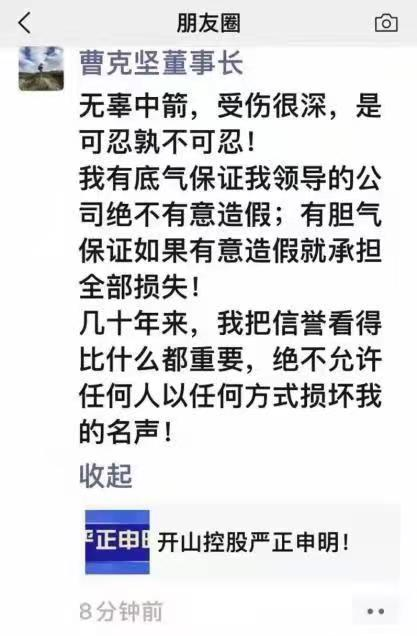 ▼開山股份董事長曹克堅的微信朋友圈。圖片來源:網(wǎng)絡(luò)