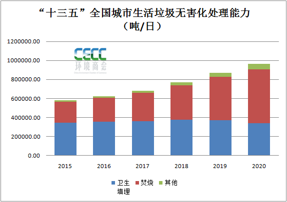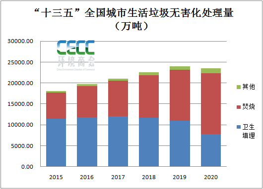 2.“十三五”全國城市生活垃圾無害化設(shè)施建設(shè)情況