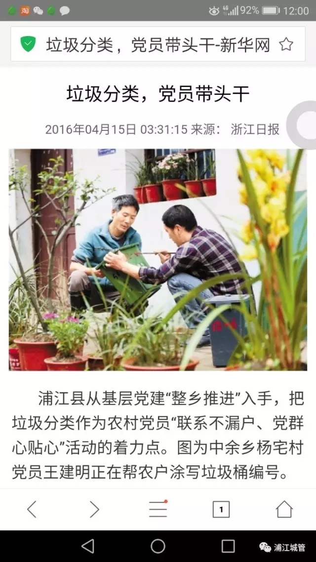 浙江日報報道浦江垃圾分類黨建制度