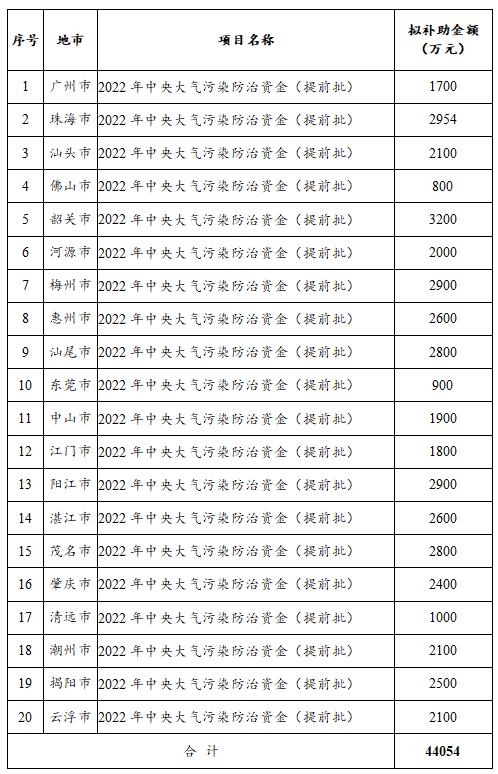 廣東省生態(tài)環(huán)境廳關(guān)于2022年中央水污染防治資金(提前批)、大氣污染防治資金(提前批)安排計劃的公示