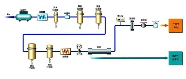 膜空分制氮工藝流程