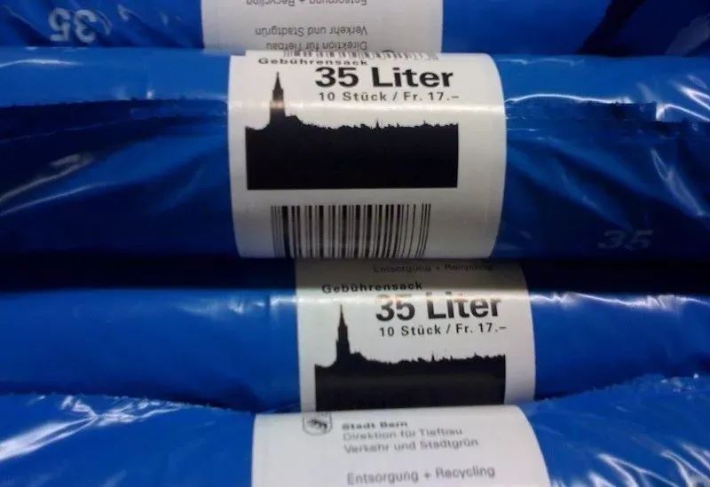 在瑞士,必須使用在超市購買的專門垃圾袋裝垃圾,如果不用則垃圾不被收運。瑞士維持環(huán)境清潔的花費并不低,特別是路邊垃圾回收更是耗資巨大。在瑞士的26個州大部分都征集垃圾袋稅,一個容量約17升的垃圾袋大致需要支付1.6瑞士法郎(約合人民幣10.3元)。而事實上,人們買的不是垃圾袋,而是合法丟棄垃圾的權利——也就是說,如果不用這類垃圾袋包裝,扔垃圾是違法的。每到垃圾回收日,家家戶戶門口就會有一排藍色垃圾袋,對於初見者,可謂蔚為奇觀。