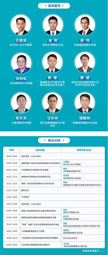 本次峰會(huì),9位行業(yè)大咖將著重闡述儲(chǔ)能行業(yè)政策動(dòng)向,重點(diǎn)剖析儲(chǔ)能產(chǎn)業(yè)鏈在相關(guān)技術(shù)、工藝、產(chǎn)品等方面所取得的成就,深入分析相關(guān)應(yīng)用市場(chǎng)的變化趨勢(shì),共同推動(dòng)儲(chǔ)能產(chǎn)業(yè)鏈的全面發(fā)展。