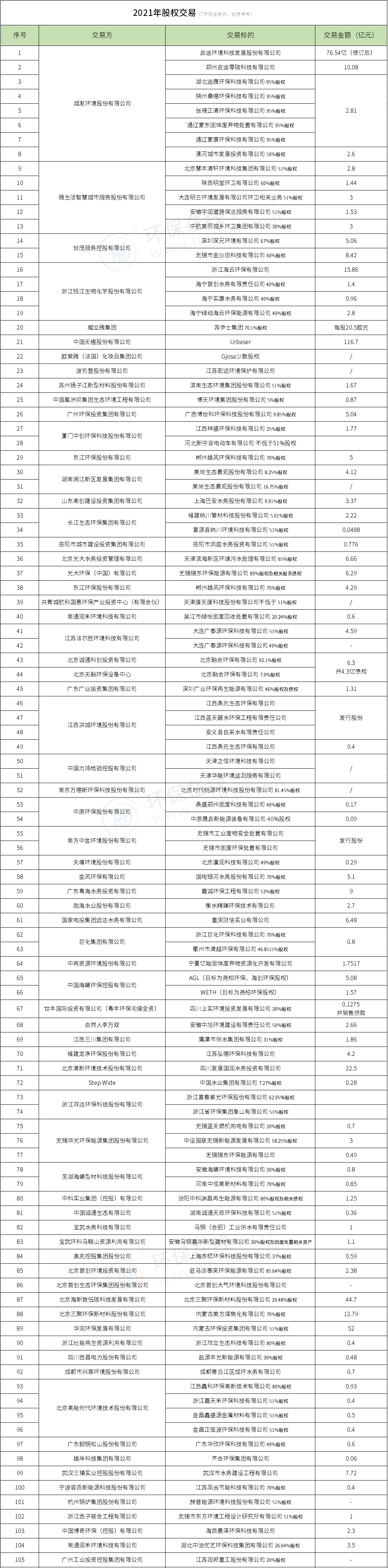 本文,就再來看一看,2021年環(huán)保市場上由“買賣”帶來的格局變化。