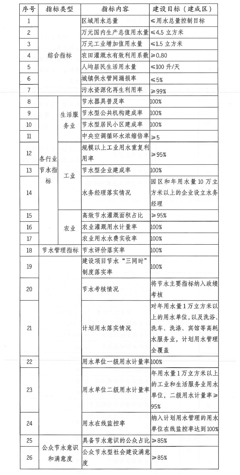 到2025年,以水定城、以水定人的發(fā)展要求得到有效落實,用水總量和強度嚴(yán)格控制,節(jié)水管理制度全面實行,節(jié)水激勵機制取得突破,各項節(jié)水設(shè)施同步建設(shè),節(jié)約用水整體布局基本成型,建成區(qū)按照節(jié)約用水指標(biāo)體系要求推進各項節(jié)水工作。
