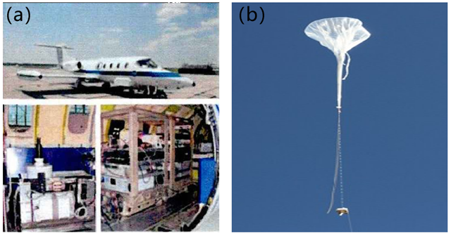 圖4.(a)機(jī)載DIAL探測(b)球載TDLAS探測