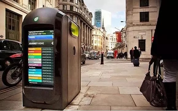 為了解決倫敦日益加劇的廢報(bào)紙回收問題而發(fā)明的Techno Pods 新式多媒體創(chuàng)意垃圾箱,也叫報(bào)紙回收站。垃圾箱兩側(cè)還有 LED 屏幕,能夠不斷滾動(dòng)播報(bào)當(dāng)日新聞事件、天氣情況、顯示地鐵信息等。這種設(shè)計(jì)完全顛覆了以往垃圾箱在人們腦海中的印像,使垃圾箱成為城市中不可缺少的傳媒載體。