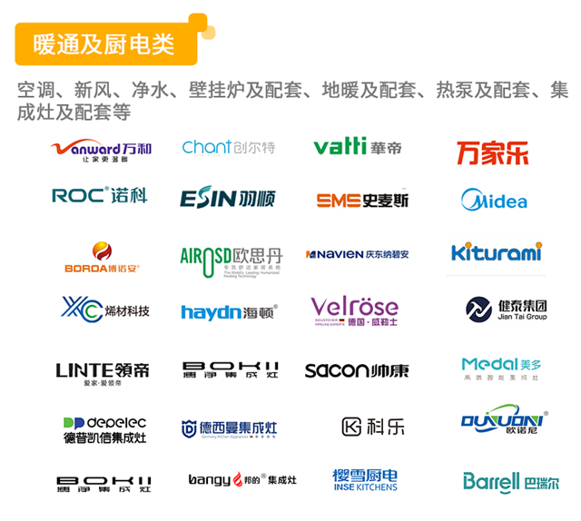 暖通舒適家居及廚電館規(guī)劃在11號(hào)館及10-11號(hào)連接館集中展示,目前入駐部分品牌有:萬和、創(chuàng)爾特、華帝、萬家樂、諾科、羽順、美的、烯材、史麥斯、博諾安、歐思單、帥康、領(lǐng)帝、博凈、美多、德西曼、德國威勒士、海頓、慶東納碧安、健泰、科樂、廣東燃?xì)獠膳療崴疇t商會(huì)展團(tuán)、店口水暖產(chǎn)業(yè)聯(lián)盟展團(tuán)等共計(jì)165家行業(yè)企業(yè)已報(bào)名參展。