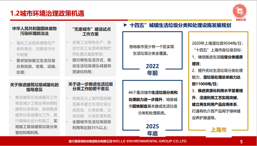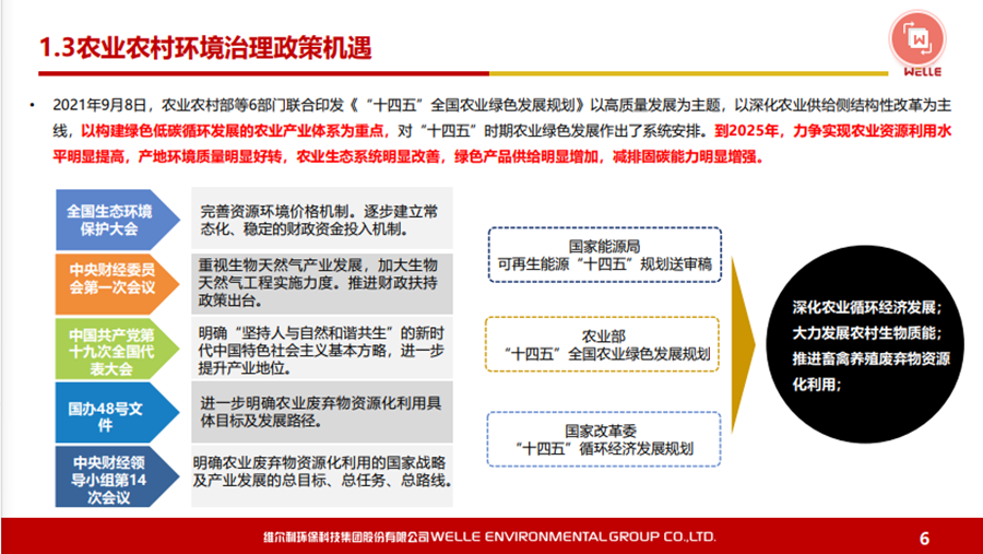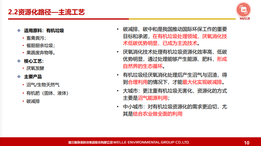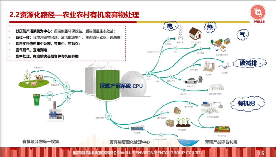 本文圍繞碳中和背景下的政策機遇、城鄉(xiāng)有機廢棄物資源化的的主要處理方法和路徑等內(nèi)容展開,同時對維爾利集團概況和發(fā)展歷程做了簡要回顧。 2021年10月20-21日,2021年中國沼氣學(xué)會學(xué)術(shù)年會暨中德沼氣合作論壇在南京舉行。作為2021年中國沼氣學(xué)會學(xué)術(shù)年會的承辦單位,維爾利環(huán)??萍技瘓F股份有限公司董事長李月中博士以《城鄉(xiāng)有機廢棄物資源化路徑探討》為主題,與大家一起探討了碳中和背景下城鄉(xiāng)有機廢棄物資源化的發(fā)展與未來。報告圍繞碳中和背景下的政策機遇、城鄉(xiāng)有機廢棄物資源化的的主要處理方法和路徑等內(nèi)容展開,同時對維爾利集團概況和發(fā)展歷程做了簡要回顧。本文根據(jù)其發(fā)言整理。▼維爾利環(huán)??萍技瘓F股份有限公司董事長 李月中各位領(lǐng)導(dǎo)、各位專家、各位同仁,大家上午好!今天有幸代表維爾利集團和大家做交流,作為會議的承辦方,也感謝中國沼氣學(xué)會、南京大學(xué)、德國沼氣協(xié)會給維爾利這個機會。維爾利作為專業(yè)的企業(yè),實際上歷史并不是很長,但是我們對沼氣和厭氧技術(shù)這塊有自己的獨到見解。作為一個商業(yè)機構(gòu),企業(yè)怎么能夠在競爭行業(yè)里生存和發(fā)展?在這里和大家做一些交流,和大家一起思考,同時希望在座的同仁能夠在這個行業(yè)相對比較困難的情況下抱團取暖。2020年9月,國家主席習(xí)近平在聯(lián)合國大會上提出“二氧化碳排放力爭于2030年前達到峰值,努力爭取2060年前實現(xiàn)碳中和”。2021年3月15日,習(xí)近平總書記主持召開中央財經(jīng)委員會第九次會議并發(fā)表重要講話強調(diào),要把碳達峰、碳中和納入生態(tài)文明建設(shè)整體布局,拿出抓鐵有痕的勁頭,如期實現(xiàn)2030年前碳達峰、2060年前碳中和的目標。從能源結(jié)構(gòu)上來說,有機垃圾資源化產(chǎn)生的生物質(zhì)能源在實現(xiàn)雙碳目標上具有獨特意義。這實際上也是倒推企業(yè)行業(yè)轉(zhuǎn)型。對大家來說,“碳達峰碳中和”既是一個挑戰(zhàn)也是一個機會。這里面包括了現(xiàn)在我們推出的對城市環(huán)境,對農(nóng)村農(nóng)業(yè)環(huán)境可能存在的機會,這些機會對環(huán)保產(chǎn)業(yè)來說,個人認為受到政策影響比較大。為什么德國2016年在農(nóng)業(yè)生物天然氣領(lǐng)域有下滑?是因為某些政策出現(xiàn)了不到位的情況,一些企業(yè)就不愿意去做。在碳達峰、碳減排的前提下,我們有很多的機會,但這個機會要真正落實,還是要國家從頂層設(shè)計到具體的政策到位,才能夠使這個行業(yè)有比較好的發(fā)展。在城市環(huán)境治理領(lǐng)域,城市有機廢棄物(垃圾量)非常大。上海實施垃圾分類以后,2020年上海濕垃圾的產(chǎn)生量是每天在9500-10000噸左右,也就是說1/3為濕垃圾。這對焚燒廠來說,是一個巨大的減負,但同時對處理能力也有了條件限制。我們深度參與了這方面工作,現(xiàn)在上海的處理能力大概為4000噸左右,意味著上海的濕垃圾處理能力還有60%在建,徹底實現(xiàn)垃圾分類的路還很遠。北京情況更為嚴重。原來北京只有幾個堆肥廠,原來只是三相做一點小的堆肥,如果真的要實現(xiàn)垃圾源頭分類,大概4、5千噸的垃圾處理設(shè)施要重新建設(shè)。在農(nóng)業(yè)農(nóng)村環(huán)境治理領(lǐng)域,包括農(nóng)產(chǎn)品加工這方面,整個市場規(guī)模可能更大。各位前輩都已經(jīng)做了一些介紹,我們是不是能夠全部實現(xiàn)資源化處理,是值得商榷的。對于不同的原料,我們應(yīng)該怎么處理?作為企業(yè),我們推行起來還是有一定的難度。我們現(xiàn)在的這些大型的沼氣項目,它的源頭、原料、收益、收益成本,包括最終的產(chǎn)品出路,收集半徑到底多少是最合理的?實際上是需要根據(jù)不同有機廢棄物的種類以及最終產(chǎn)品的出路來規(guī)劃項目規(guī)模,而不是按照政策要求。比如一萬方的沼氣工程才稱得上大型沼氣項目,才有補貼,這樣的項目就不一定能夠真正地實現(xiàn)盈利。 下面大概講一講我們最近對城鄉(xiāng)有機廢棄物資源化的主要處理方法和路徑。