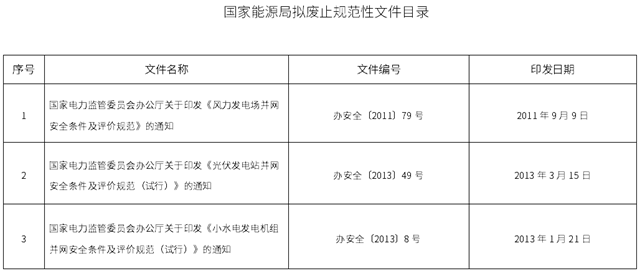 國(guó)家能源局綜合司關(guān)于公開征求擬廢止規(guī)范性文件意見的公告