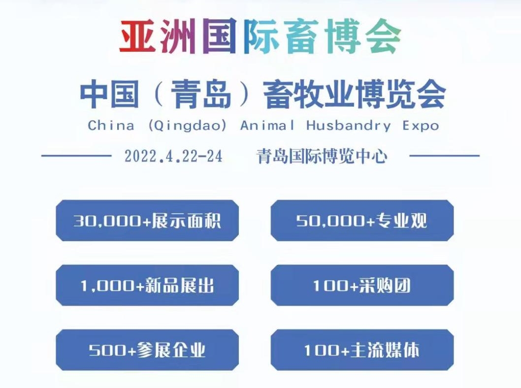 2022中國(guó)(青島)畜牧業(yè)博覽會(huì)將于2022年4月22日-24日在青島國(guó)際博覽中心舉辦。