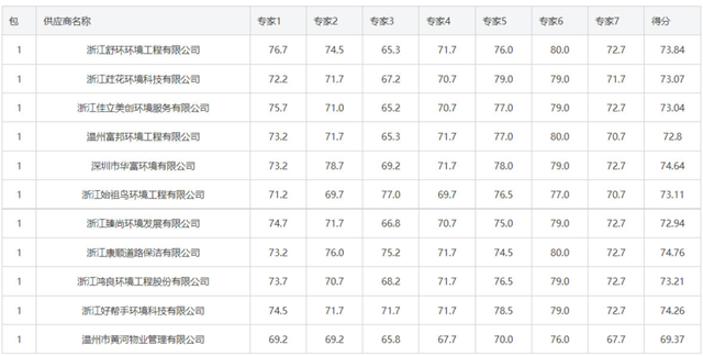 例如,表1中的浙江省溫州市甌海區(qū)瞿溪街道環(huán)衛(wèi)一體化項目,十街一鎮(zhèn)的服務費總預算金額約6億元。但項目被分成11個包,自去年8月開始招標以來,11個項目先后由溫州富邦環(huán)境浙江好幫手環(huán)境、浙江佳立美創(chuàng)環(huán)境、浙江利東環(huán)境、浙江舒環(huán)環(huán)境、福龍馬集團6家公司中標,其中富邦環(huán)境共中4標,好幫手和舒環(huán)環(huán)境各中兩標,佳立美創(chuàng)、利東環(huán)境和福龍馬各中一標。