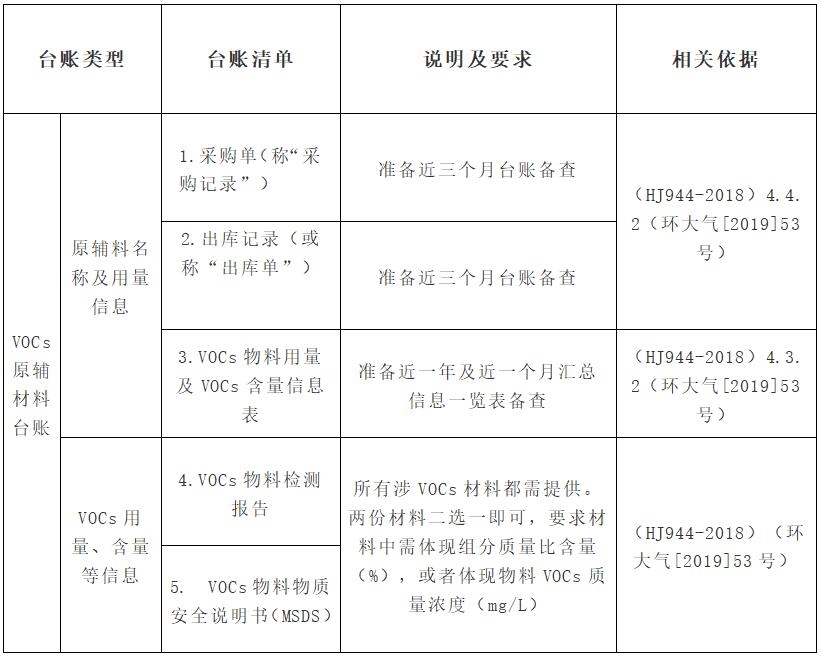 企業(yè)的VOCs管控臺賬清單可參考下面表格: