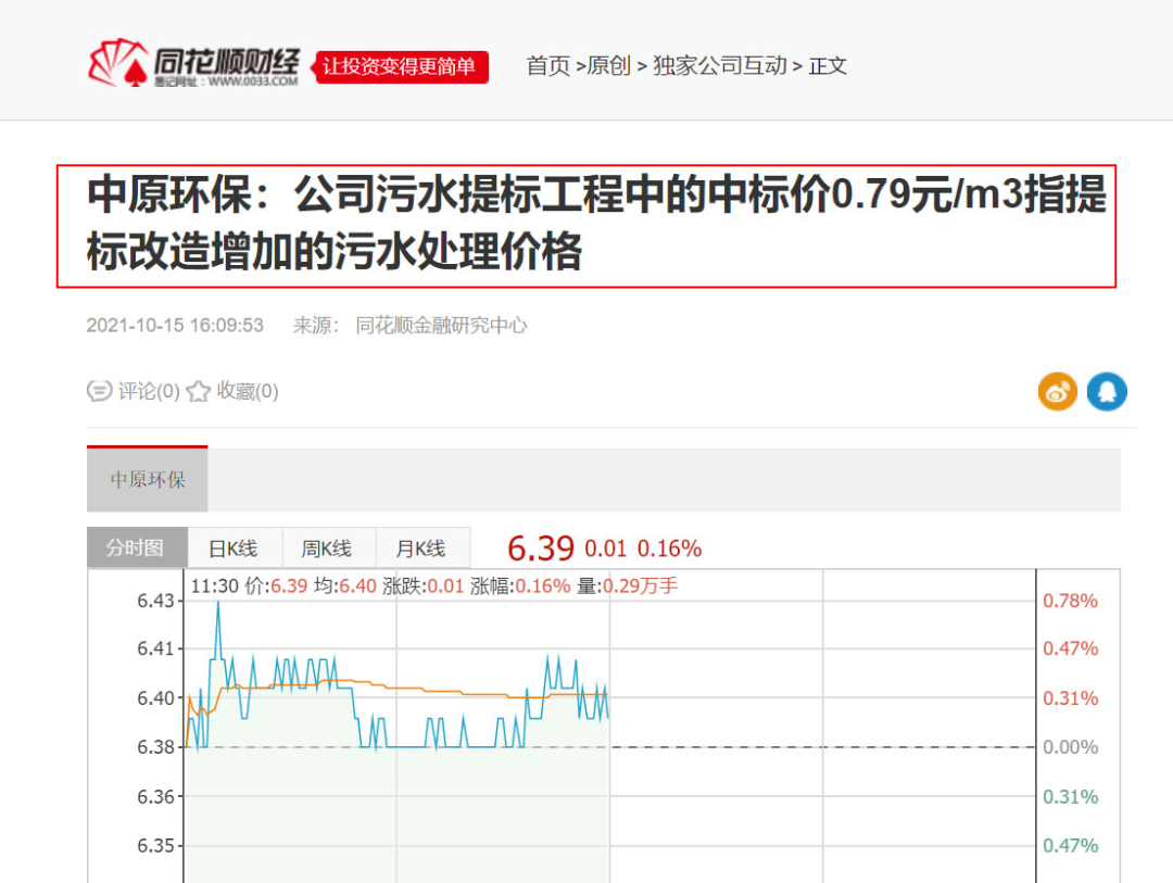 3、中原環(huán)保:公司污水提標(biāo)工程中的中標(biāo)價(jià)0.79元/m3指提標(biāo)改造增加的污水處理價(jià)格,同花順金融研究中心,2021-10-15