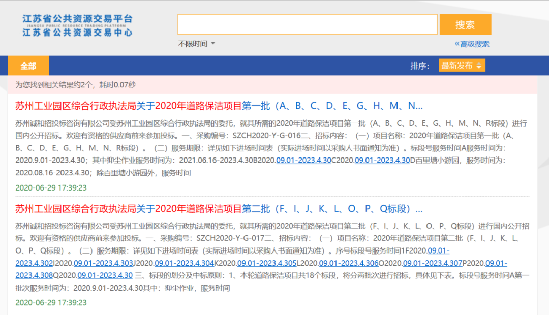 在老環(huán)衛(wèi)人眼中,環(huán)衛(wèi)項(xiàng)目“碎片化”其實(shí)早已是老生常談,毫無(wú)新意。但是作為圈內(nèi)人,我們需要警惕的是這種現(xiàn)象的頻發(fā)地不是什么經(jīng)濟(jì)欠發(fā)達(dá)地區(qū),而是北上廣、杭州、鄭州等一線、新一線城市城市。例如,2021年3月4日,北京市朝陽(yáng)區(qū)發(fā)布2021年大黃莊綠化隊(duì)園林綠化養(yǎng)護(hù)及保潔服務(wù)項(xiàng)目(服務(wù)期約為1年左右)中標(biāo)公告,總金額約為4524.8萬(wàn)元的項(xiàng)目竟然被分割成39個(gè)子包!▼公告部分截圖。來(lái)源:北京市政府采購(gòu)網(wǎng)39個(gè)子包中,中標(biāo)金額最高的約為178萬(wàn)元,最低的僅為73.2萬(wàn)元,平均中標(biāo)價(jià)格約為116萬(wàn)元。中標(biāo)人中,僅1家外地公司,地方保護(hù)主義味道頗為濃厚(下列多個(gè)案例均證明了這一點(diǎn))。這種將環(huán)衛(wèi)項(xiàng)目“稀碎”的行為在北京似乎早已成了一項(xiàng)傳統(tǒng)。在上述項(xiàng)目發(fā)布前不久,北京還發(fā)布了2021年大望京公園綠化養(yǎng)護(hù)及保潔服務(wù)項(xiàng)目,總中標(biāo)金額約為1773.73 萬(wàn)元,被10家本地企業(yè)瓜分。中標(biāo)金額最高的子包約為350萬(wàn)元,最低為90.1萬(wàn)元,相差2.8倍。無(wú)獨(dú)有偶,除了北京,環(huán)衛(wèi)項(xiàng)目“碎片化”在其他地區(qū)也很常見。2020年6月,蘇州市工業(yè)園區(qū)發(fā)布2020年道路保潔項(xiàng)目,分為兩批共18個(gè)標(biāo)段,服務(wù)期約為2年8個(gè)月,項(xiàng)目預(yù)算金額約為4.9億元。而根據(jù)該區(qū)域2018年的采購(gòu)記錄,14家企業(yè)瓜分了20個(gè)標(biāo)段。▼圖片來(lái)源:江蘇省公共資源交易平臺(tái)2020年12月,蘇州市姑蘇區(qū)發(fā)布約2.25億元2020年環(huán)衛(wèi)招標(biāo)項(xiàng)目信息公告。項(xiàng)目服務(wù)期1年,分3大項(xiàng)目共16個(gè)標(biāo)段,預(yù)算金額最高的子包為3056.35萬(wàn)元,最低的為683.1萬(wàn)元,兩者相差近4.5倍。2021年2月,2.64億元鎮(zhèn)江市京口、潤(rùn)州區(qū)城市道路街巷環(huán)衛(wèi)保潔市場(chǎng)化作業(yè)項(xiàng)目開標(biāo),分為9個(gè)標(biāo)段,中標(biāo)人全部為江蘇本地企業(yè)。2021年4月,1.62億元的成都市雙流區(qū)城市管理局直管區(qū)域(內(nèi)線)環(huán)衛(wèi)作業(yè)采購(gòu)項(xiàng)目發(fā)布中標(biāo)公告,被分割為16個(gè)標(biāo)段。除長(zhǎng)沙中聯(lián)重科環(huán)境產(chǎn)業(yè)有限公司等2家外地企業(yè),其余全部為四川本地公司。2021年4月,株洲市蘆淞區(qū)環(huán)衛(wèi)服務(wù)項(xiàng)目開標(biāo),中標(biāo)金額約1.35億元,分為9個(gè)標(biāo)段,其中有4家本地企業(yè)中標(biāo)。2021年8月,近1.9億元西安市雁塔區(qū)城市道路市場(chǎng)化清掃保潔項(xiàng)目開標(biāo),分為8個(gè)標(biāo)段。本地企業(yè)占了6個(gè)。不僅是環(huán)衛(wèi)項(xiàng)目,就連環(huán)衛(wèi)裝備項(xiàng)目也逃不開被碎成“渣渣”的命運(yùn)。2021年5月14日,河北省發(fā)布唐山市豐南區(qū)環(huán)衛(wèi)生產(chǎn)用車采購(gòu)項(xiàng)目招標(biāo)公告,預(yù)算金額才1835萬(wàn)元,卻被分為10個(gè)子包,每個(gè)子包平均預(yù)算價(jià)格不足200萬(wàn)元。此外,當(dāng)垃圾分類項(xiàng)目興起之后,由于其獨(dú)特的需求和服務(wù)模式,“碎片化”更是找到了生長(zhǎng)的“土壤”。2021年5月,鄭州市發(fā)布惠濟(jì)區(qū)2021年生活垃圾分類項(xiàng)目,預(yù)算5千萬(wàn)出頭,卻被分為了15個(gè)包(服務(wù)內(nèi)容:垃圾分類服務(wù)及廚余、大件和低值可回收垃圾專業(yè)收運(yùn))。同年6月,鄭州市又發(fā)布二七區(qū)2021生活垃圾分類項(xiàng)目中標(biāo)公告,總中標(biāo)金額6千多萬(wàn)的項(xiàng)目被分為15個(gè)標(biāo)段,除中國(guó)天楹股份有限公司等2家企業(yè)外,其余均為河南本地企業(yè)。最近的一次,據(jù)環(huán)衛(wèi)科技網(wǎng)報(bào)道,2021年9月,北京朝陽(yáng)區(qū)7天內(nèi)發(fā)布各區(qū)域/街道垃圾分類項(xiàng)目共計(jì)21個(gè)。此次“碎片化招標(biāo)”預(yù)算金額共計(jì)8463萬(wàn)元,最高和最低相差5.4倍。綜上所述,環(huán)衛(wèi)市場(chǎng)“碎片化”的問(wèn)題已經(jīng)成為了整個(gè)行業(yè)的一個(gè)頑疾,嚴(yán)重制約著環(huán)衛(wèi)行業(yè)市場(chǎng)化的進(jìn)程。