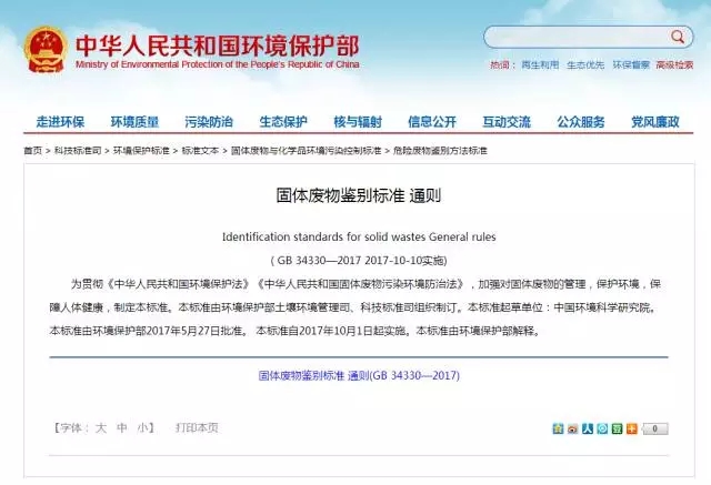 因此,為了統(tǒng)一各個檢驗機(jī)構(gòu)或鑒別機(jī)構(gòu)鑒別固體廢物的尺度,保證鑒別質(zhì)量和鑒別結(jié)果的公正和可靠,環(huán)境保護(hù)部與國家質(zhì)量監(jiān)督檢驗總局聯(lián)合發(fā)布《固體廢物鑒別標(biāo)準(zhǔn) 通則》(GB 34330-2017)。該標(biāo)準(zhǔn)是我國首次制定的關(guān)于固體廢物的鑒別標(biāo)準(zhǔn),具有強(qiáng)制執(zhí)行的效力。