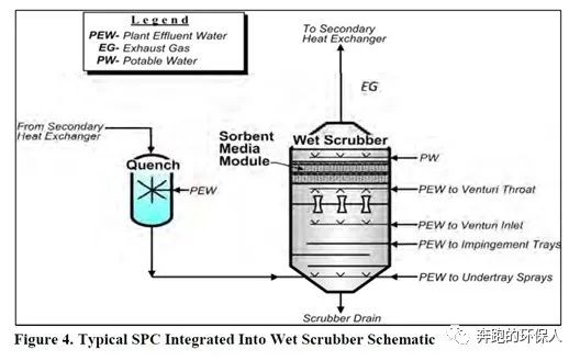 3.SPC吸附技術,Sorbent Polymer Composite,一種利用特殊吸附材料的新型專利汞去除技術。其可以單獨作為一個裝置使用,也可以改造已有的濕式洗滌塔,將其作為濕式洗滌塔的一部分來使用。該系統(tǒng)采用了由SPC濾料組成的專用濾料床,可從污泥焚燒廢氣中捕獲離子態(tài)和元素態(tài)的汞。