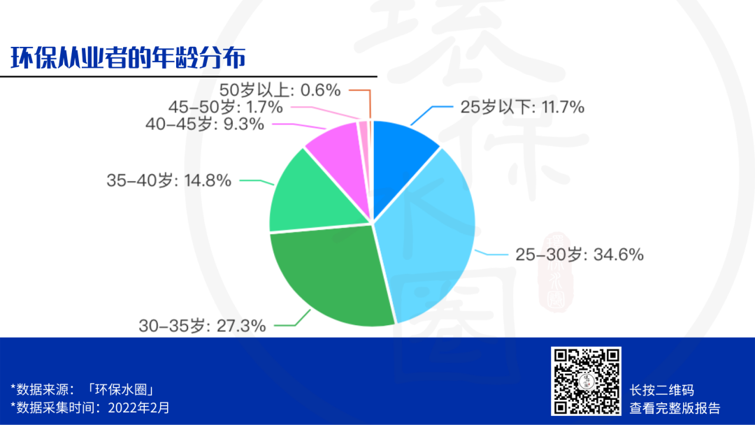 從上圖中我們可以看到,25-30 歲的環(huán)保人占比高達(dá)34.6%,30-35歲的環(huán)保人占比高達(dá)27.3%,35-40歲的環(huán)保人排進(jìn)前三占比14.8%,這三個(gè)年齡段的小伙伴成為了環(huán)保行業(yè)的中堅(jiān)力量。隨著年齡的增加,以及我們結(jié)婚生子,有了自己的家庭,可能高強(qiáng)度、低收入的崗位工作已經(jīng)不適合我們了。所以我們?cè)诠ぷ髦校?/span>不僅僅是搞好自身崗位工作,更應(yīng)該不斷提升自己各方面的能力,為自己 30-35 歲以后轉(zhuǎn)變工作方向打好基礎(chǔ),逐漸轉(zhuǎn)為管理或者其他崗位,而非一線基層。