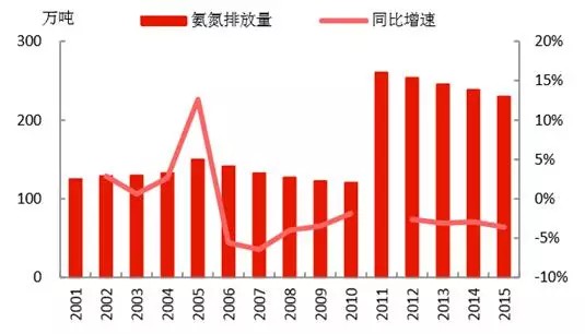 氨氮的排放量為230萬(wàn)噸,且每年以3%左右的速度下降;