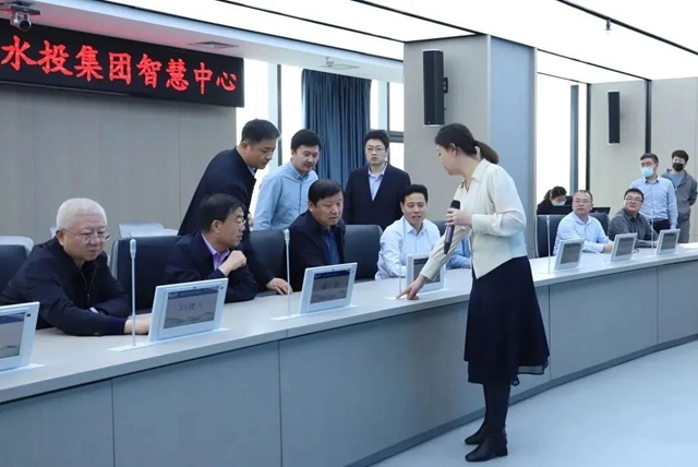 3月21日下午,集團公司黨委書記、董事長、信息化領(lǐng)導(dǎo)小組組長楊國一行觀摩“寧夏水投集團智慧中心”建設(shè)情況。