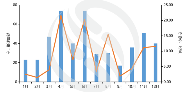 圖4:2021年每月生活垃圾填埋場項目中標情況