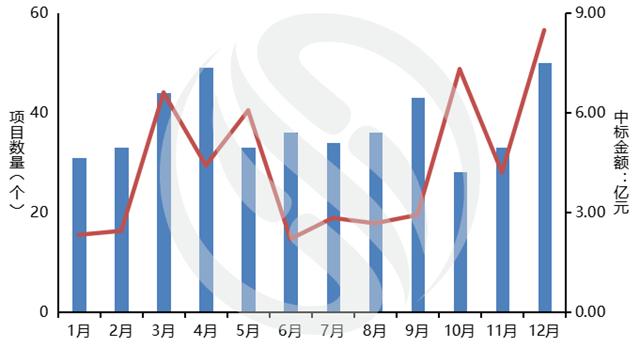 圖1:2021年每月環(huán)衛(wèi)市場化項目中標情況