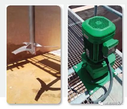剩余污泥從斜管沉淀池轉(zhuǎn)移至2個污泥儲存池,每個污泥儲存池長13.9m,寬24m,深5m。每個池內(nèi)配備一臺24kW的攪拌器。