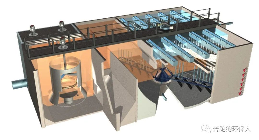 寫到這里,出于小編的敬(BU)業(yè)(YAO)度(LIAN),這里必須插播一個廣告了??瓷蠄D的這個沉淀池造型,結(jié)合其“快-慢混合+斜管沉淀、刮泥機、污泥內(nèi)循環(huán)”的描述,只能說,這個沉淀池和蘇伊士的高密度沉淀池非常相似。