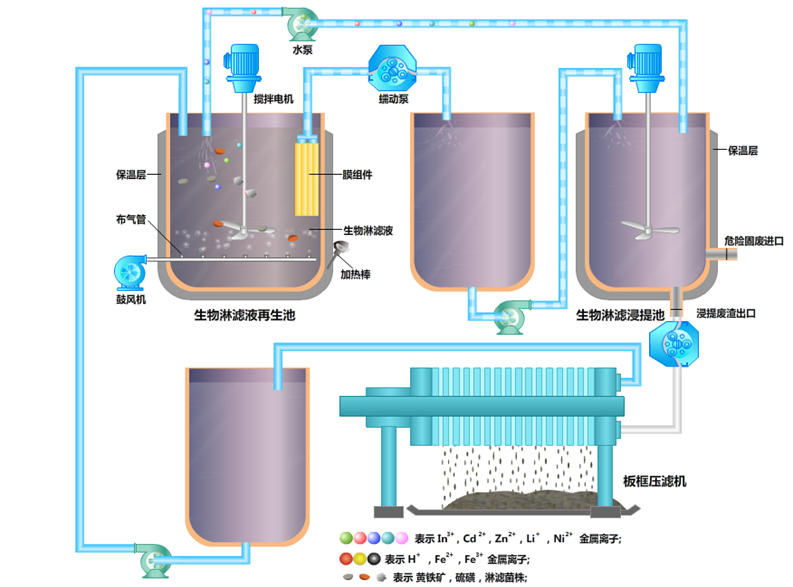Fig.3 Schematic diagram of a complete set of equipment and integrated system for bioleaching-circulating enrichment of target heavy metals from hazardous wastes containing heavy metals