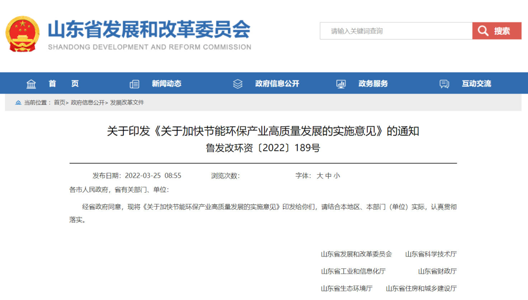 1、關于印發(fā)《關于加快節(jié)能環(huán)保產業(yè)高質量發(fā)展的實施意見》的通知,山東省發(fā)改委,2022-03-25
