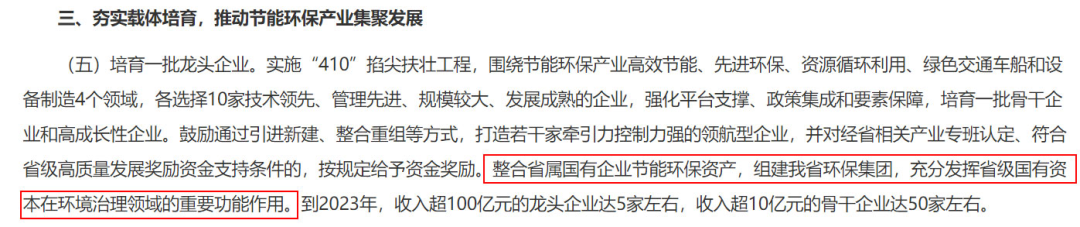 3、整合省屬國有企業(yè)節(jié)能環(huán)保資產,組建我省環(huán)保集團,充分發(fā)揮省級國有資本在環(huán)境治理領域的重要功能作用。