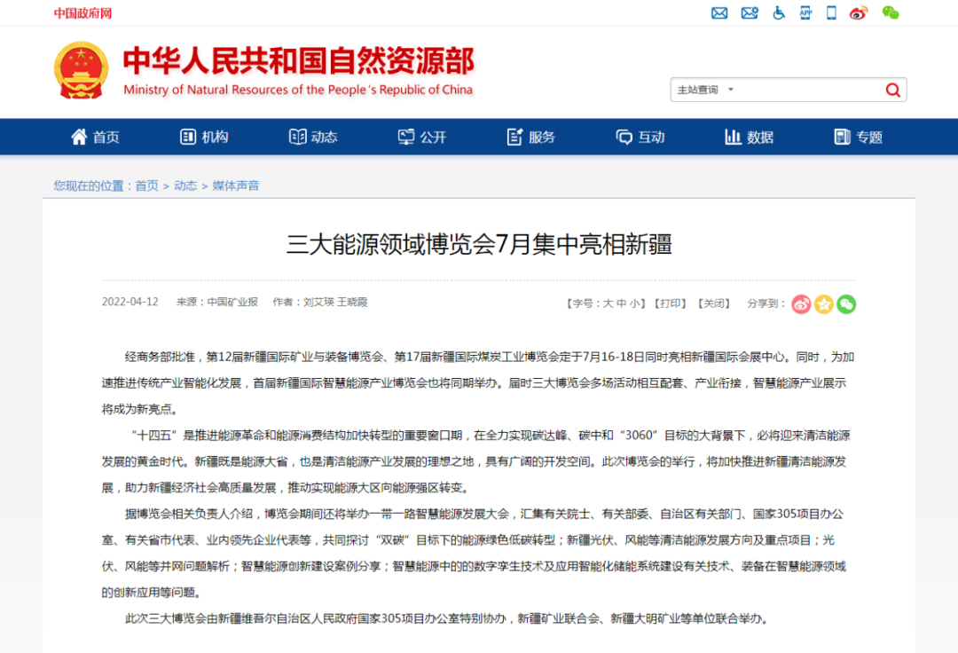 經(jīng)商務部批準,第12屆新疆國際礦業(yè)與裝備博覽會、第17屆新疆國際煤炭工業(yè)博覽會定于7月16-18日同時亮相新疆國際會展中心。同時,為加速推進傳統(tǒng)產(chǎn)業(yè)智能化發(fā)展,首屆新疆國際智慧能源產(chǎn)業(yè)博覽會也將同期舉辦。屆時三大博覽會多場活動相互配套、產(chǎn)業(yè)銜接,智慧能源產(chǎn)業(yè)展示將成為新亮點。