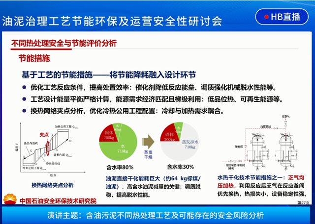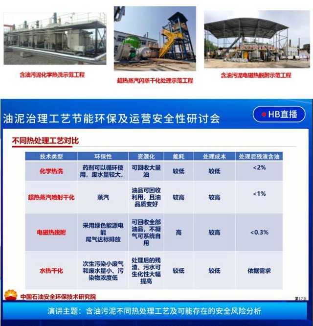 在《含油污泥不同熱處理工藝及可能存在的安全風(fēng)險(xiǎn)分析》的主題演講中,劉光全詳細(xì)介紹了中國石油集團(tuán)安全環(huán)保技術(shù)研究院開發(fā)的熱處理工藝,包括含油固廢化學(xué)熱洗、超熱蒸汽噴射干化、熱脫附、水熱干化等,并對幾種技術(shù)的特點(diǎn)及安全性進(jìn)行了闡述與分析。
