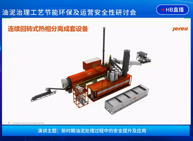 本次研討會杰瑞環(huán)保工藝工程師張巖也帶來了《新時(shí)期油泥處理過程中的安全提升及應(yīng)用》的主題分享:杰瑞環(huán)保擁有連續(xù)回轉(zhuǎn)式熱相分離、連續(xù)螺旋式分析分離、調(diào)制分離、油罐機(jī)械清洗、廢棄物回注等多種核心技術(shù),以及物料預(yù)處理及均質(zhì)化等配套技術(shù),針對不同客戶需求、不同領(lǐng)域的含油廢棄物,以最合適的分類分質(zhì)方式,提供高標(biāo)準(zhǔn)低成本、高效率的一體化的含油廢棄物及工業(yè)廢泥治理方案。