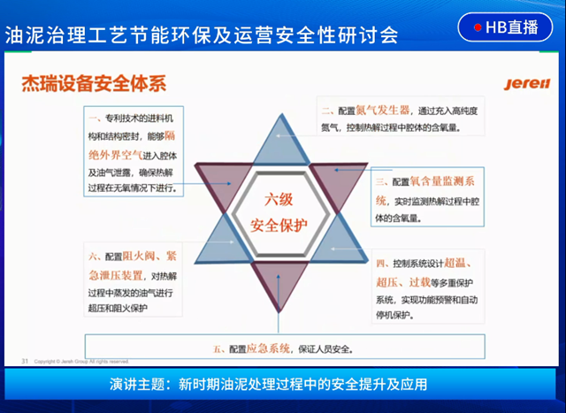杰瑞設(shè)備“六級安全保護(hù)”系統(tǒng),從機(jī)械結(jié)構(gòu)密封、氮?dú)獍l(fā)生器、氧含量監(jiān)測系統(tǒng)、功能預(yù)警和停機(jī)保護(hù)系統(tǒng)、應(yīng)急系統(tǒng)到阻火閥與緊急泄壓裝置,通過多種技術(shù)手段構(gòu)建起層層防護(hù),來為油泥處理的安全性把關(guān)。