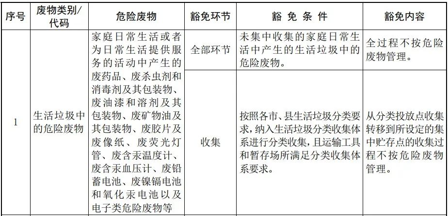 由于危險廢物具有諸多危害,危險廢物收集、運輸、處置、利用等全流程嚴(yán)格按照經(jīng)營許可證制度管理。同時也規(guī)定,在滿足一定的條件下,危廢的收集、運輸、處置等環(huán)節(jié)可以豁免,按照豁免內(nèi)容的規(guī)定實行豁免管理。例如生活源的危廢(廢電池、水銀溫度計等),如果未集中收集的,則全部環(huán)節(jié)不按危廢管理,如果已按照地方要求納入分類收集體系,且運輸工具和暫存場所滿足分類收集體系要求,則從分類投放點收集、轉(zhuǎn)移到集中貯存點的收集過程不按危廢管理。