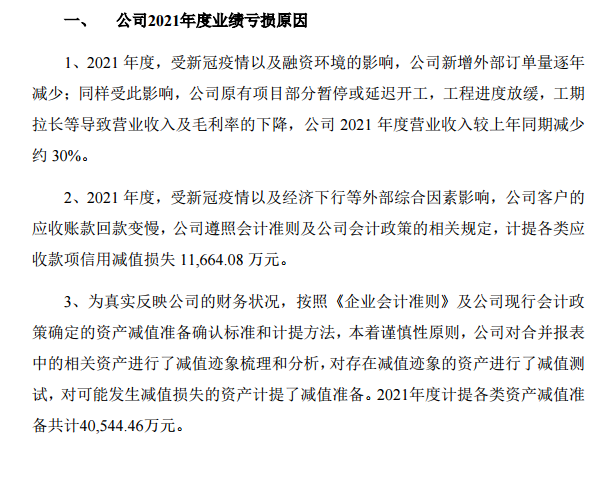 而這些,都可以看做是PPP暴雷后的次生危害,一直延續(xù)到了現(xiàn)在。這種影響,即使在企業(yè)完成混改后,也仍然需要很長時間才能消化。比如,節(jié)能鐵漢就表示,長達兩年多的經(jīng)營困境,中節(jié)能集團年初完成并購后在管理方面做了大量的融合工作,公司在報告期內(nèi)仍處于修復(fù)狀態(tài),直接影響了公司經(jīng)營。如果說行業(yè)屬性是根本原因,PPP暴雷是最大變量,那么新冠疫情就是“黑天鵝”和“灰犀?!保沟铆h(huán)保行業(yè)“屋漏偏逢連夜雨”,進一步加劇了情況的嚴重程度。比如,博世科就表示,受經(jīng)濟下行、全球新冠疫情反復(fù)、環(huán)境治理行業(yè)市場競爭加劇等因素影響,報告期內(nèi)公司國內(nèi)外業(yè)務(wù)均受到了不同程度的影響,獲取訂單及項目實施不及預(yù)期。博天環(huán)境也解釋說,2021年度,受新冠疫情以及融資環(huán)境的影響,公司新增外部訂單量逐年減少;同樣受此影響,公司原有項目部分暫停或延遲開工,工程進度放緩,工期拉長等導(dǎo)致營業(yè)收入及毛利率的下降,公司2020年年度營業(yè)收入較上年同期減少約30%。還有,2021年度,受新冠疫情、經(jīng)濟下行等外部綜合因素影響,博天客戶的應(yīng)收賬款回款變慢,公司遵照會計準則及公司會計政策的相關(guān)規(guī)定,還計提各類應(yīng)收款項信用減值損失約21,900萬元。總之,疫情對環(huán)保企業(yè)的影響是全方位的,既有新增訂單的影響,也有現(xiàn)有項目工程的影響,還有應(yīng)收賬款回款速度的影響,給環(huán)保企業(yè)造成了不小的麻煩。