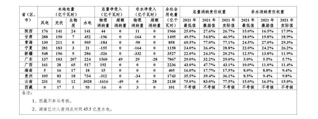 國家能源局關(guān)于2021年可再生能源電力消納責(zé)任權(quán)重完成情況的通報(bào)
