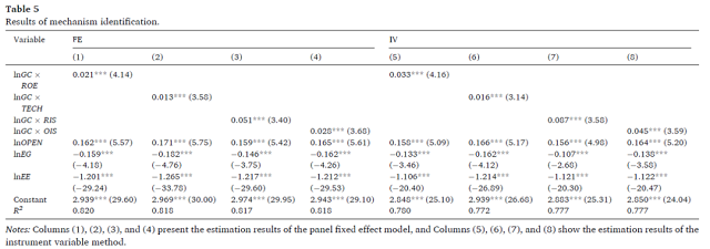 綠色信貸估計系數(shù)是正的,在1%的顯著性水平上是顯著的,這表明減少流向重污染企業(yè)的金融資源(即綠色信貸政策的強(qiáng)化)有助于減少污染。換句話說,在研究期間,中國的綠色信貸政策對改善環(huán)境質(zhì)量起到了全面的作用。