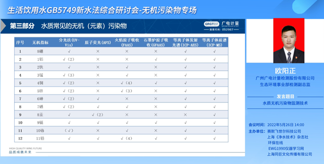 由歐陽正打頭陣,有關《生活飲用水 無機污染物監(jiān)測技術》的主題分享就此展開。